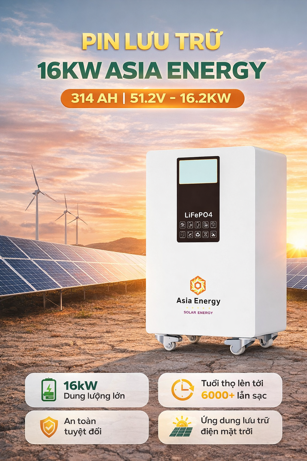 Pin Lưu trữ 16KW Asia Energy 314AH 51.2V-16.2kW